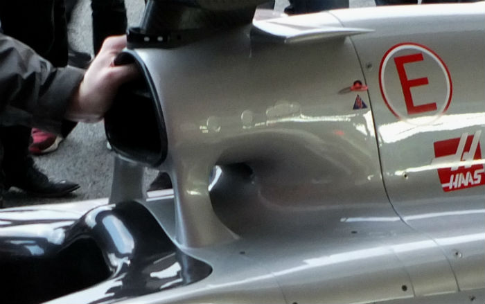Perhaps as a result the car has a similar shape to the Ferrari on the top of the nose, though at present the Haas does not have a vent where the Ferrari does.