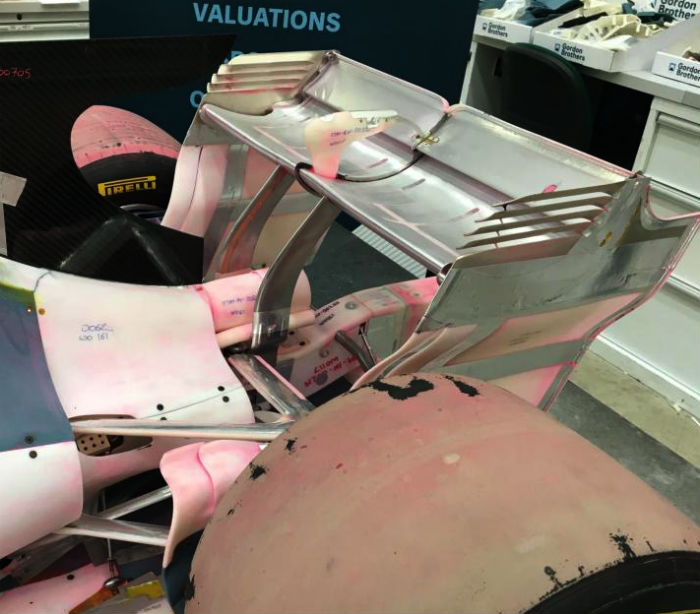 Looking from the rear an early version of the lower and wider rear wing mandated by the new 2017 aerodynamic regulations can be seen. Note the amount of vents in the end plate (above and below).