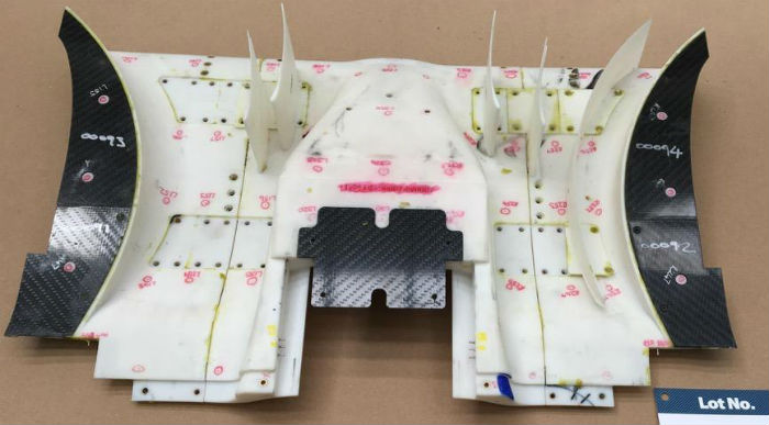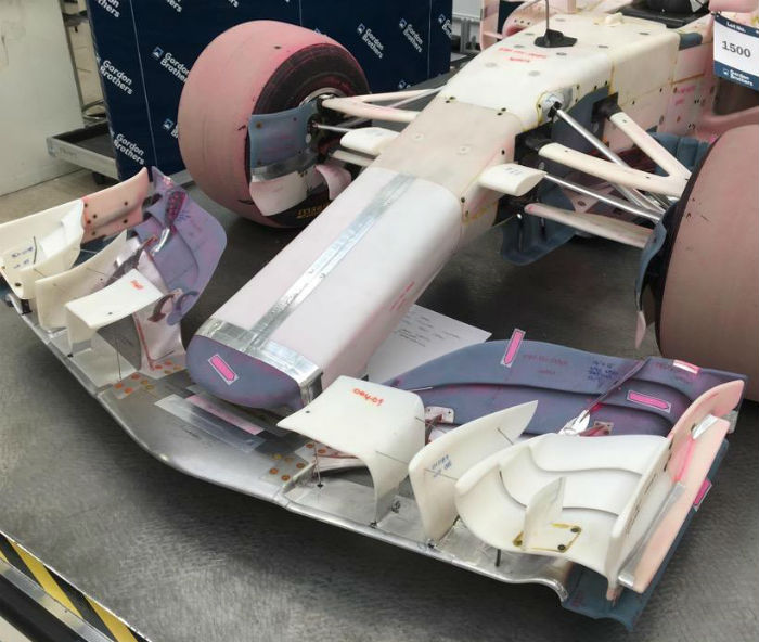 In the pictures seen here of the new model the car is in the same specification it was in following its last ever wind tunnel session which took place in December 2016. The 60% scale model reveals a conventional design with a push rod front suspension layout and a pull rod rear. A dorsal fin is fitted to the engine cover.