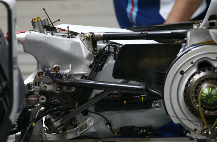 At the rear Manor would have used the 2017 Williams transmission (above) though it would have been fitted with a completely bespoke suspension system.