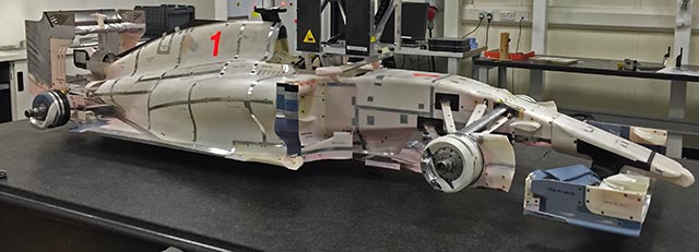 Note the amount of material which has been removed from the structure in order to reduce its weight as much as possible.