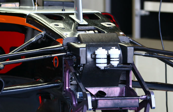 A look at the VJM09 bulkhead – predictably very similar to the VJM08B (note the vertical torsion bars)