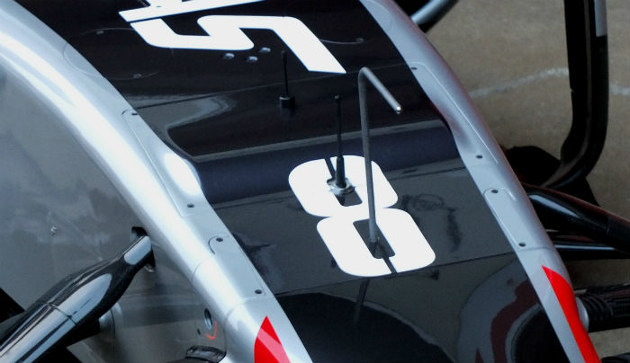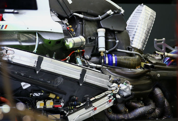 Below is another look at the roll hoop and airbox design on the Haas, the under hoop cooling duct is just visible.