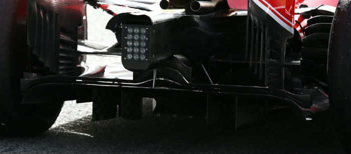 The Ferrari, above has a very similar treatment in terms of the turning vane around the outer edge of the sidepod and the small bump caused by the protruded side impact structure.