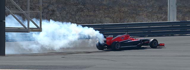 Sadly one of the Marussia MR03’s was written off in a freak accident that almost cost driver Jules Bianchi his life. This revealed that the car had a software conflict which prevented a FIA mandated failsafe system from engaging but it had little influence on the overall result of the crash. See here for more details: Â JULES BIANCHI CRASH REPORT.