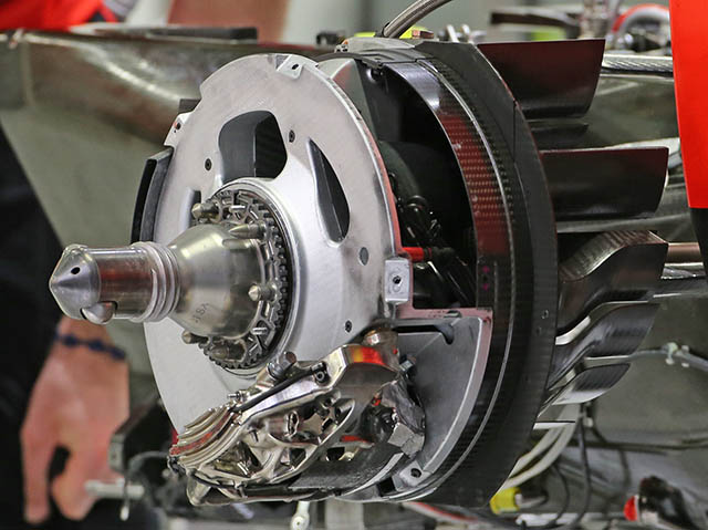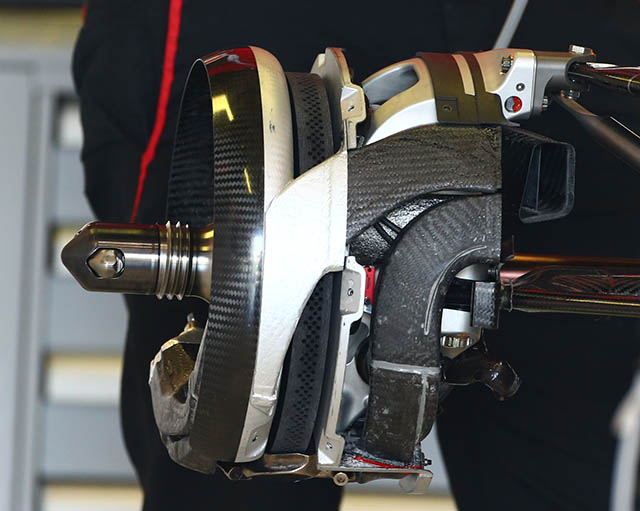 The brake setup on the MR03 carries over from 2014, this was one of the areas where the car was particularly weak last year. (rears above, fronts below)