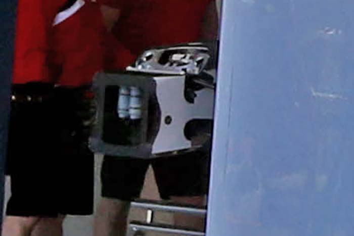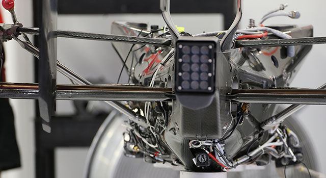 A few minor changes were made to the rear of the car including a new coating on the ‘y-lon’ wing support and the ‘monkey seat’ winglet. Seen here as a lighter coloured section. Note the temperature strips.