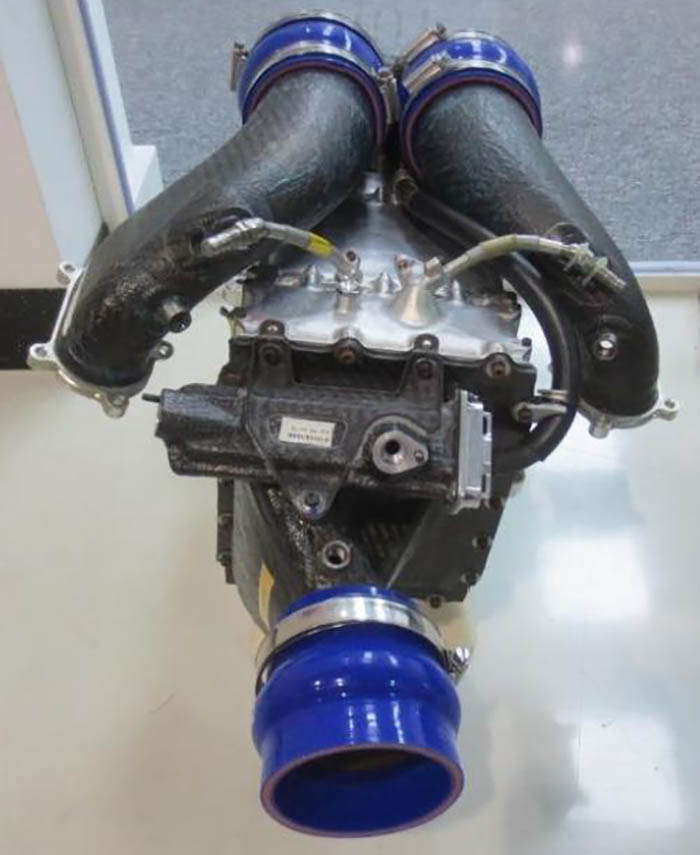 A look at the opposite side of the power unit of comparison. The exhaust wrap is clear to see here, as is the pipe arrangement to the waste gate.