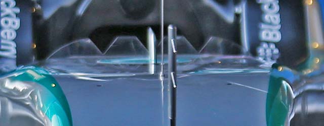 The front crash structure of the W06 sits a long way back from the leading edge of the front wing. It is though that Mercedes carried out a number of crash tests at Cranfield in an attempt to get the best possible nose and indeed may have more iterations on the way.