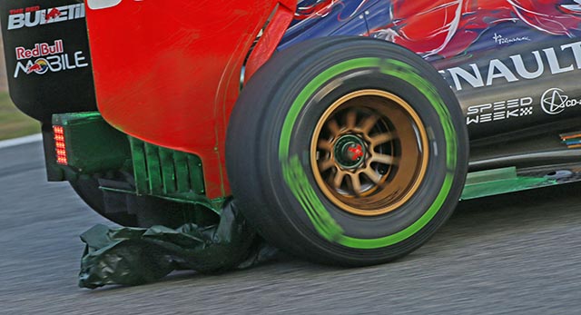 One of Toro Rosso’s aero runs at Jerez was spoilt by a plastic bag picked up in the rear suspension.