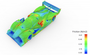 To compare the aerodynamics of the cyclist with a racecar, another simulation was run on a model of the 800kW Perrinn 424 electric hypercar. The set up and solver were similar, just with a slightly higher wind speed of 50m/s. Again, the results took 120 minutes to simulate.