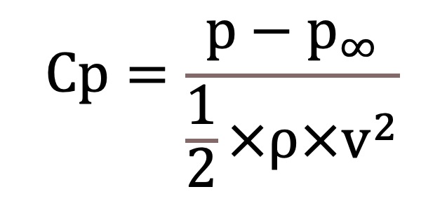 Where p is the value registered on each tap; p∞ is the atmospheric pressure; ρ is air density, and v is air velocity