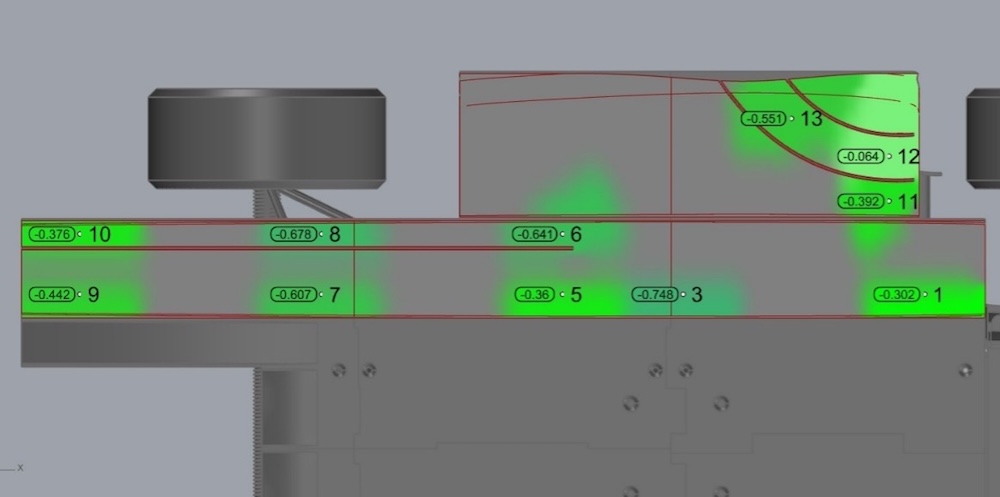 Phoenix Racing then plotted the coefficient of pressure distribution along the floor of the car, enabling it to visualise where most of the negative lift was coming from.