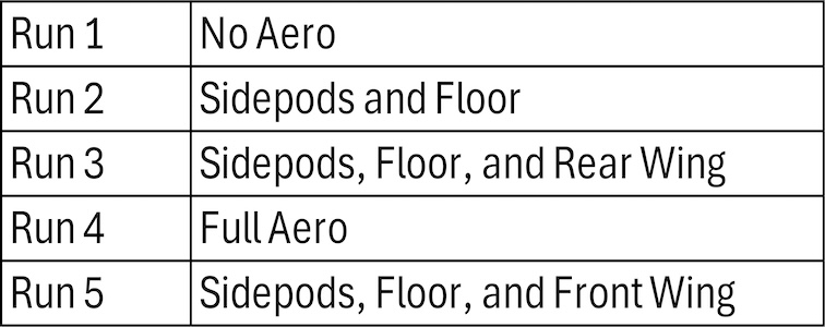 According to the team, this was a key reason why the runs with full aero, and full aero minus the rear wing, were the slowest of the lot.