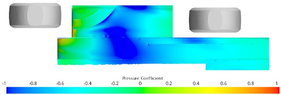 Similarly, the pressure coefficient across the rear wing was also mapped.