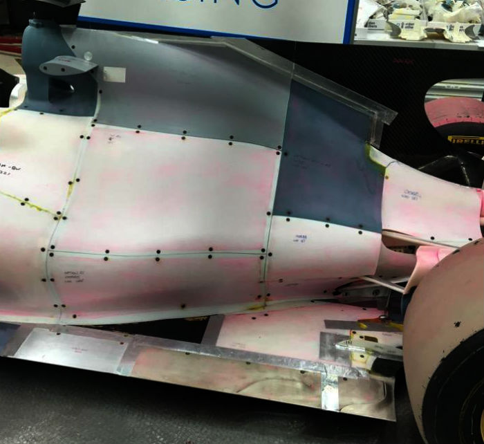 In the pictures seen here of the new model the car is in the same specification it was in following its last ever wind tunnel session which took place in December 2016. The 60% scale model reveals a conventional design with a push rod front suspension layout and a pull rod rear. A dorsal fin is fitted to the engine cover.
