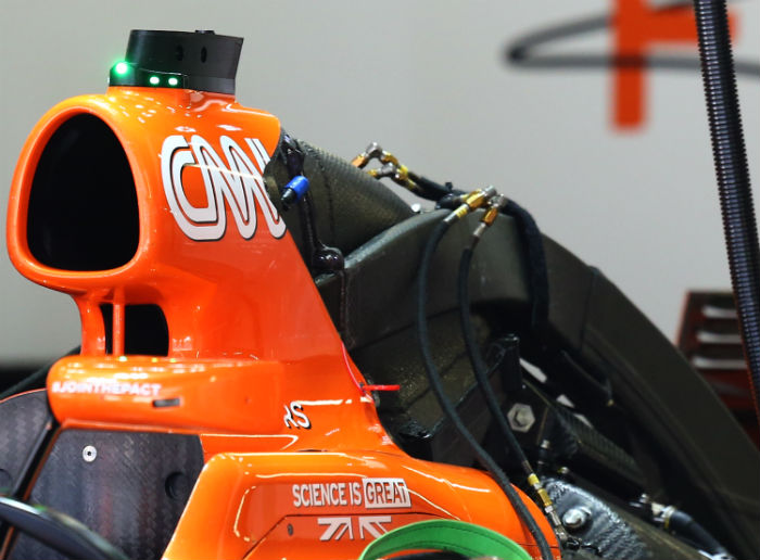 The roll hoop on the MCL32 is fairly conventional and follows the general concept of that used on the MP4-31 with the main duct split between cooling and combustion gas, while a smaller central cooling duct is located below the main duct.