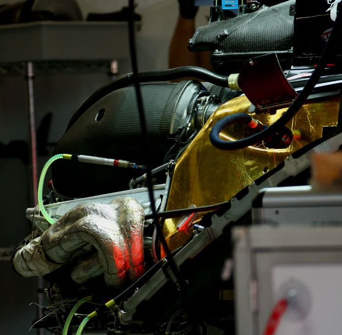 The Mercedes V6 installation is very similar in overall design terms to that used on the VJM08B.