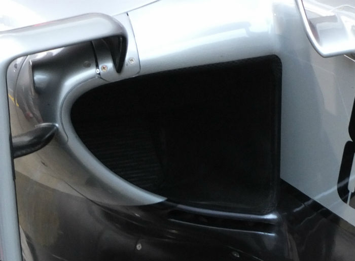 The Ferrari, above has a very similar treatment in terms of the turning vane around the outer edge of the sidepod and the small bump caused by the protruded side impact structure.