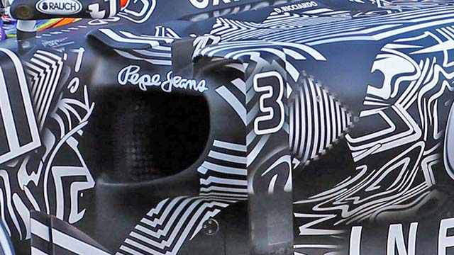 The RB11 appears to have a much smaller level of cooling that either the RB10 or the Toro Rosso STR10 which has a near identical engine installation. Its sidepod cooling ducts are extremely small compared to other cars, including the Toro Rosso.