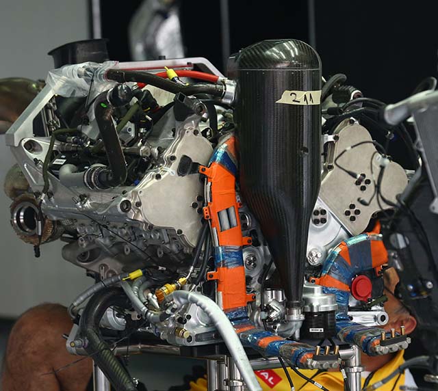 ‘The 2014 unit was already well placed in its centre of gravity, however we have tidied up the packaging to give greater ease of integration into the chassis. Additionally many systems and functions have been rationalized and simplified to further ease the task. In short, there are very few carry over pieces between the 2014 and 2015 power units.’